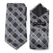 Show that you're willing to do any job for the right price with this tie, featuring the helmet of the Galaxy's greatest bounty hunter. Set in a plaid pattern with different hues of blue, this tie gives you the confidence to answer any request with As You Wish. Our tie will maintain its shape and hold a sturdy knot thanks to the durable yet stylish 100% Polyester. Officially licensed by Lucasfilm LTD.