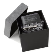 Explore the Dark Side with this Darth Vader Favorites gift set. Featuring a 100% silk black and white paisley-patterned tie and coordinating tie clip shaped like a miniature Darth Vader lightsaber, it's the ideal way to pay homage to the greatest villain in the galaxy. Officially licensed by Lucasfilm LTD.