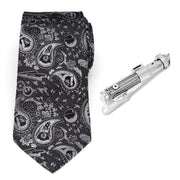 Star Wars Darth Vader Black and Gray Paisley Tie and LIGHTSABER Tie Clip Gift Set