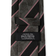 Alternating gray tonal Vader Helmets compliment the stripe pattern on our Vader Black Stripe Men's Tie. Black stripes are accented by a red and white border, creating a subtle pop of color to the subdued tones of the tie. Experience the Dark Side with our expertly crafted Silk Blend tie. It's built to withstand the tests of galactic events, infused with the Sith, and ready to accompany you on interstellar orders. Pairs with any of our Darth Vader products. Officially licensed by LucasFilm LTD.
