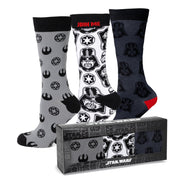 Join Darth Vader and the Empire with our Darth Vader Gift Set. This set includes our Vader Patterned White, Rebel Imperial Gray, and Darth Vader Black and Red Socks as well as our Darth Vader Lapel Pin. Experience the Dark Side with our expertly crafted gift set. It's built to withstand the tests of galactic events, infused with the Sith, and ready to accompany you on interstellar orders. Officially licensed by LucasFilm LTD.
