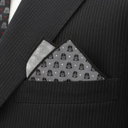 If you're looking for the perfect accessory to complete your formal wardrobe, look no further than this simple gray Darth Vader 100% silk pocket square. Featuring rows of black helmets intersected with tiny silver dots, it can be worn alone or with one of our many other Star Wars pieces. Officially licensed by Lucasfilm LTD.