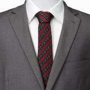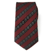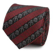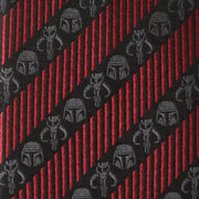 In a mixture of awning and ribbed stripes, our Mandalorian Black Red Stripe Tie tie has a unique yet striking design. Solid black stripes alternate with the red and black striped base. Mandalorian helmets and mythosaur skulls are stitched within the solid black stripes, giving off an intense appearance. Our tie will maintain its shape and hold a perfect knot thanks to the durable yet soft 100% Silk. Pair with any of our matching Mandalorian items. Officially licensed by LucasFilm LTD.