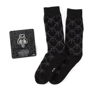 Embark on a stylish adventure with the Mandalorian Charcoal Gift Set. This sleek set includes a pair of black socks featuring the Mythosaur Skull and a matching lapel pin. Perfect for the Star Wars enthusiast who appreciates both fashion and fandom, these accessories add a touch of bounty hunter flair to any ensemble. Showcase your allegiance to the Mandalorian creed with every step and detail. Elevate your wardrobe with this sophisticated and formidable gift set, and may the way of the Mandalore be with you.
