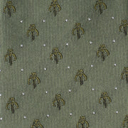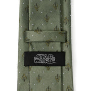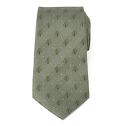 Our Mandalorian Dot Sage Green Tie is perfect for your next guild metting. A play on the traditional dot pattern, woven sage green Mythosaur skulls sit in diagonal rows with complimentary white micro-dots, creating a unique effect. Experience the Way of the Mandalore with our expertly crafted 100% Silk tie. It's built to withstand the challenges of bounty hunting across the galaxy, infused with the honor of Mandalorian creed, and ready to accompany you on interstellar hunts. Officially licensed by LucasFilm LTD.