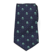 Members of the Mandalorian Guild are known for never taking off their helmets, so we thought they deserved a tribute. 100% navy silk forms the background for a series of mint green dots and helmet icons, making this tie the ideal accessory when a real helmet isn't available. Officially licensed by Lucasfilm LTD.