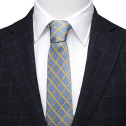 Ignore your first day jitters. You’re set up for success with this modern, gold-checked tie. It’s the perfect contrast to your dark suit collection.