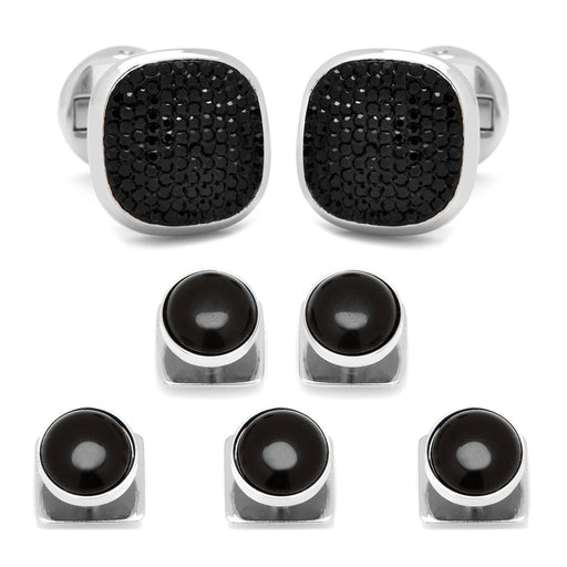 View full detailsElevated tradition for the modern man. We've combined our bestselling round onyx tuxedo studs with a set of sparkling pave crystal cufflinks to cre...