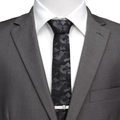 View full detailsGunmetal gray forms the foundation color of this 100% silk tie, contrasted with narrow white stripes. Also featuring neat rows of the iconic Batman...