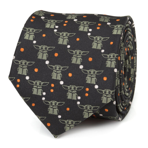 View full detailsThis subtle yet professional Star Wars tie features rows of sage green Grogu motifs, better known as The Child, stitched on a black silk base. Dots...