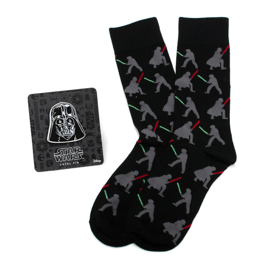 View full detailsStep into an epic saga with the Darth Vader Luke Lightsaber Battle Black Gift Set. This striking set features black socks adorned with an electrify...