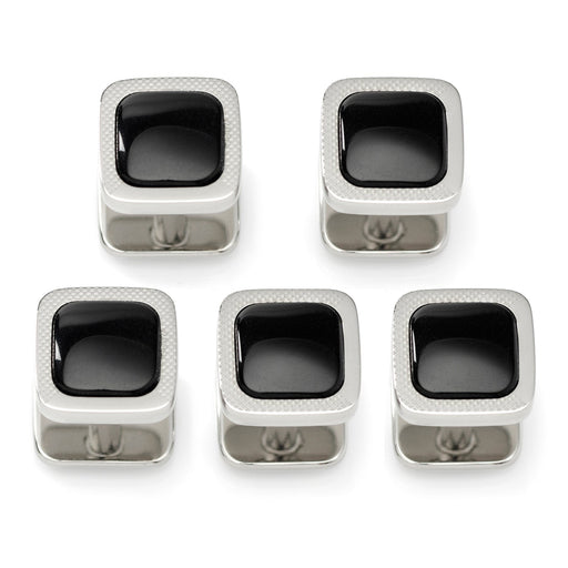 View full detailsA beautiful cushion-cut onyx stone sits in a shiny silver setting which has been etched on three sides, creating a unique visual effect on this stu...