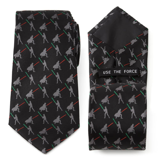 View full detailsA legendary battle between the forces of good and evil play out on this black tie. The green lightsaber of the Jedi, wielded by Luke, and the red l...