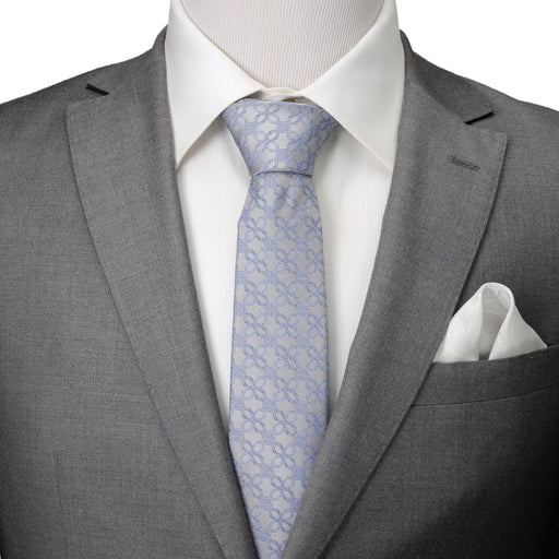 View full detailsA stunning blue floral art deco pattern creates the design for this gray men's tie. The unique and mesmerizing design covers the tie from top to ta...