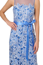Adrianna Papell Boat Neckline Sleeveless Ribbon Tie Tonal Lace Sheath Silhouette Dress