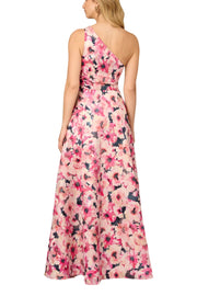 Aidan Mattox Floral Print Jacquard One-Shoulder Sleeveless with Pockets Ball Gown