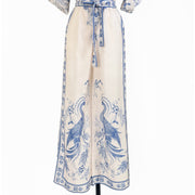 Australian Niche Printing Lapel Rolled Sleeves Shirt Wide Leg Trousers Suit