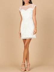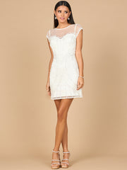 Get ready to turn heads in the Lara 51195! This beaded bridal short dress features delicate cap sleeves and an illusion neckline, perfect for a playful bride. With a flirty keyhole back, this cocktail dress is sure to make a statement. Don't settle for a boring wedding reception dress - choose Lara 51195!