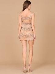 Beaded Cocktail Dress with Cap Sleeves and Fringe