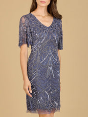 Beaded Cocktail Dress with Short Sleeves - OUTLET