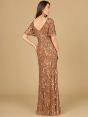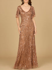 Cape sleeve beaded gown featuring modest coverage with a mid back and mid length cape sleeves to cover your arms. This brilliant gown is perfect for an elegant mother at their son's or daughter's wedding.
