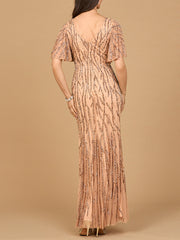 Channel your inner mother of the bride with our elegant Lara 28903 Beaded Gown! This stunning gown features intricate beading and flutter sleeves for a touch of whimsy. Perfect for any special occasion. (Bride not included.)