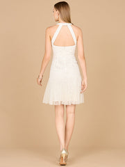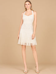 Dazzle with this modest cocktail dress by Lara with a sleeveless halter neck. The fabric is stretchy and comfortable so you'll not only look great but feel it too! Perfect for a dress to change into for your reception, a fancy bachelorette party dinner or your bridal shower! The dress will likely sit right below your knees depending on your height.