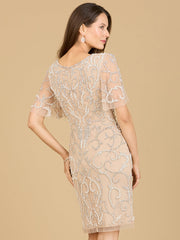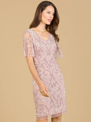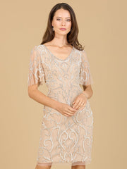Beaded Short Dress with Cape Sleeves - OUTLET