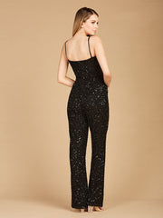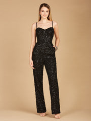 Beaded pantsuit featuring spaghetti straps for comfort. This straight leg jumpsuit features a sweetheart neckline and best of all, pockets!