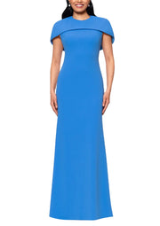 Betsy and Adam Shanice Cape Overlay Neckline Back Zipper Sheath Silhouette Floor Length Dress