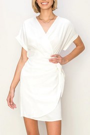 This chic dress exudes sophistication and exclusivity with its wrap design and side tie. Perfect for any occasion, it effortlessly provides a confident and stylish look.