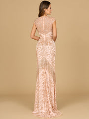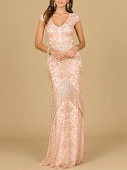 Cap Sleeve Beaded Gown with Fringe