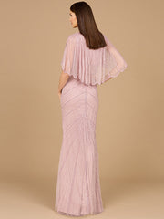 Cape Sleeve Beaded Gown