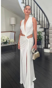 This elegant dress features a deep V-neckline and a stylish hollow-out design, perfect for showcasing your silhouette. Made from high-quality fabric, it offers a flattering slim fit that accentuates your curves. Ideal for both casual outings and special occasions, this versatile dress can be paired with heels or flats for a chic look.