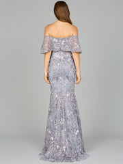 Marvelous mermaid dress with off-shoulder sleeves, covered in an elegant lace floral pattern. This sultry style flatters your physique to perfection and works for a wide range of ages.