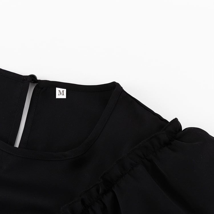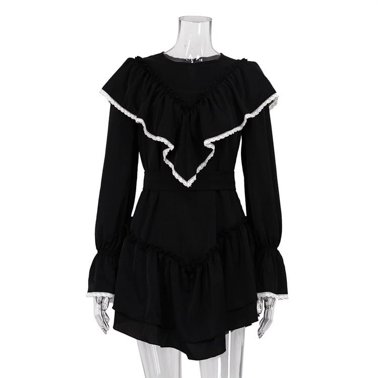 Embrace elegance and style with our beautiful Women's Graceful and Fashionable Bell Sleeve Ruffle Dress. This stunning dress, featuring a solid black color, is perfect for any occasion, whether you're heading to a casual brunch or a formal evening out. With its high waist design, it accentuates your figure while providing a comfortable fit that flatters every body type.