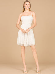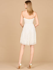 Elegant and ethereal short dress embellished allover with seed beads, pearls and beaded fringes. Perfect look your bridal shower or rehearsal dinner dress!