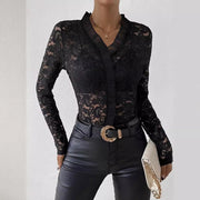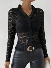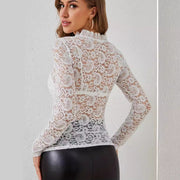 European And American Elegant Ruffled Single Layer Paisley Lace T-shirt