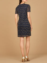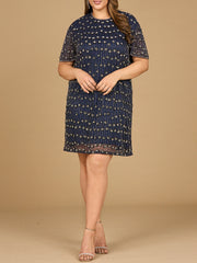 Indulge in effortless elegance with our Lara 28907 Beaded T-Shirt Dress. The linear beading adds a touch of sophistication to the modern silhouette, while the high neckline elevates the look. Step out in style and make a statement with this must-have piece.
