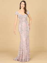 This lovely gown featuring a sweetheart neckline with cap sleeves and a fitted bodice. This dress is finished off with a mermaid bottom. One of our best fitting bodies for a classy mother look.