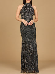 A new take on one of our best selling styles, this tulle fabric sleeveless halter neck dress features an open back with invisible central zipper. Embellished all over with seed beads and sequins. Wear this as a guest to any formal wedding!