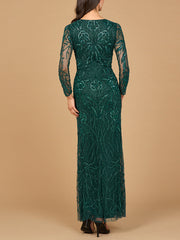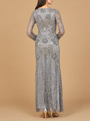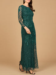 Get ready to make a statement in the Lara 28889 high neck, long sleeve beaded gown. This elegant sheath dress boasts exquisite beading and a sophisticated high neckline. Its long sleeves and timeless design make it an ideal choice for any mother of the bride. Embrace your chic and sophisticated style without compare.