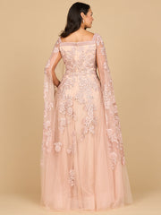 Lace Embroidered Gown with Long Cape Sleeves