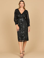 Lara 28855 - Beaded A-line Midi Dress with Long Sleeves