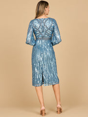 Appreciate the sophistication and exclusivity of the Lara 28909 Beaded Midi Dress. With its swirling pattern and intricate beading, this elegant dress is perfect for any wedding. The long sleeves and a-line skirt add the perfect touch of elegance.
