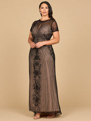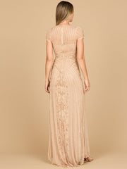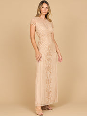 Lara 28869 - Beaded Cap Sleeve Illusion Plunge Gown