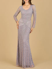 Lara 29602 - V Neck Beaded Long Sleeve Dress