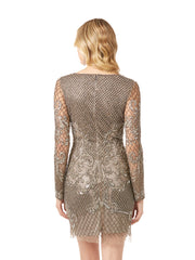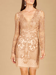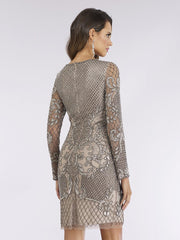 Lara 29610 - Long Sleeve Beaded Cocktail Dress