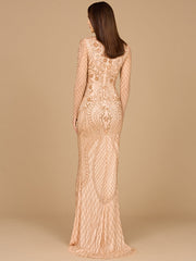 Fitted long dress with long sleeves and v neckline. Fully embellished with seed beads and sequins on a stretchable tulle fabric. This is perfect to wear to your daughter's wedding! It is so elegant and timeless.