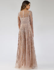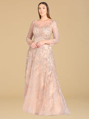 Lara 29677 - Illusion Neckline A-line Long Sleeves Gown